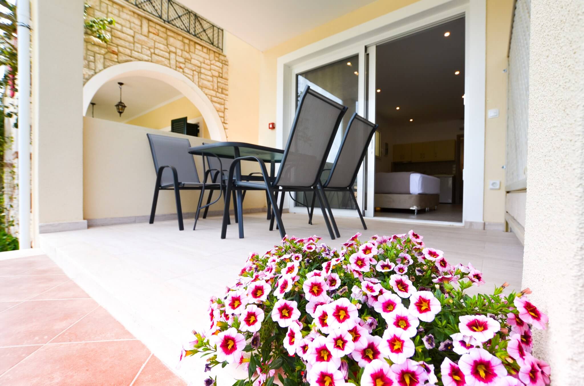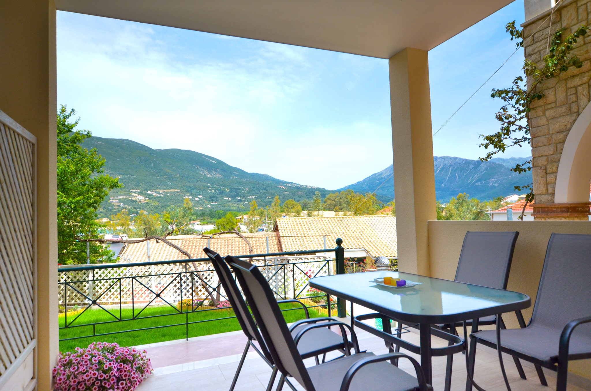 Enjoy the sunset on the furnished balcony overlooking the Ionian Sea.