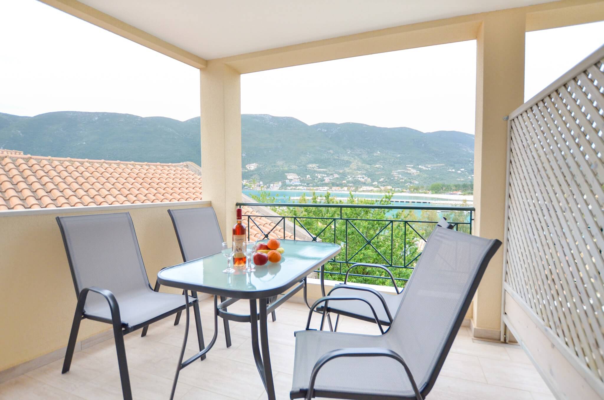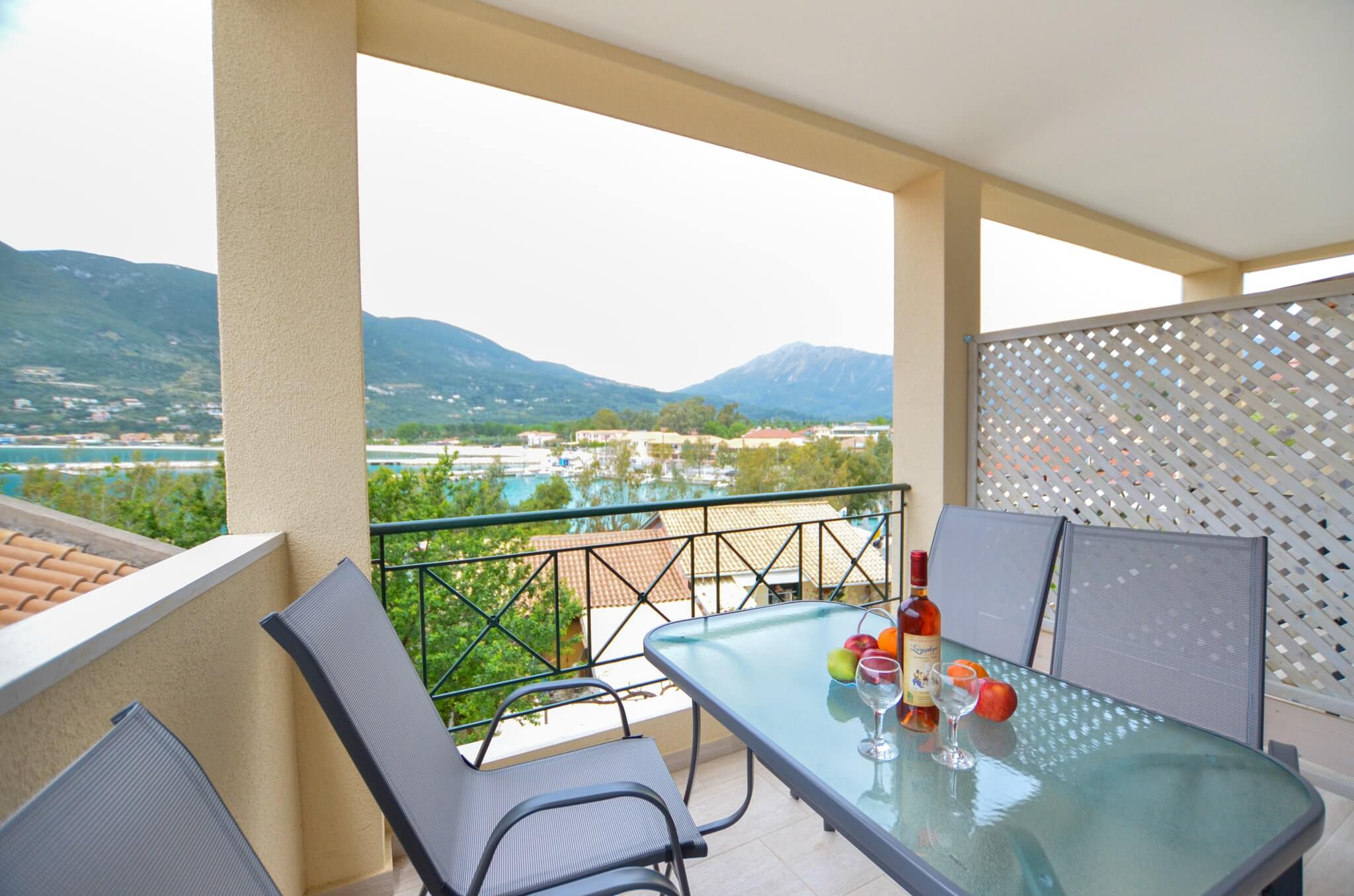 Enjoy the sunset on the furnished balcony overlooking the Ionian Sea.
